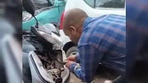 यहां एक घर के अंदर खड़ी स्कूटी में कोबरा घुस गया। स्कूटी स्टार्ट करने के दौरान कोबरा ने जब फुंकार...