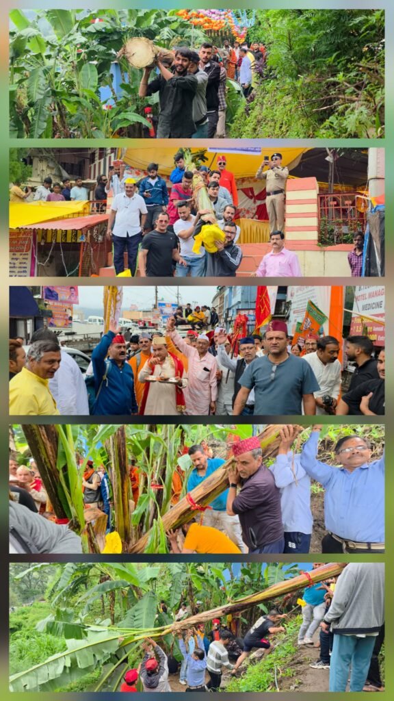 माँ नन्दा देवी मेले में कदली वृक्ष का भव्य आगमन,दुलागांव से कदली वृक्षों को नगर में लाकर मंदिर परिसर में किया गया प्रतिष्ठापित