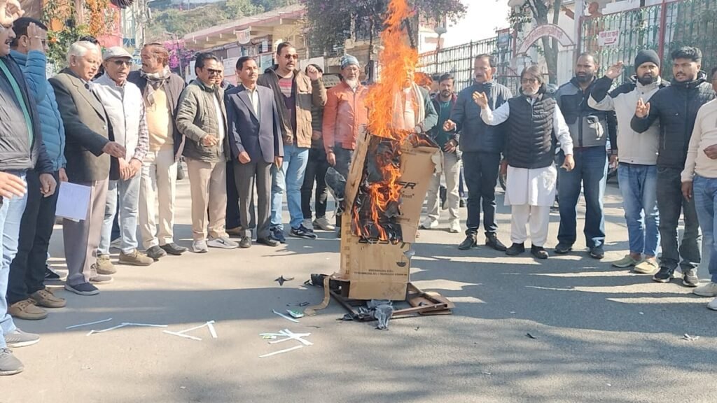 Almora News:”मनरेगा का नाम बदलने के विरोध में अल्मोड़ा कांग्रेस ने फूंका केंद्र सरकार का पुतला”