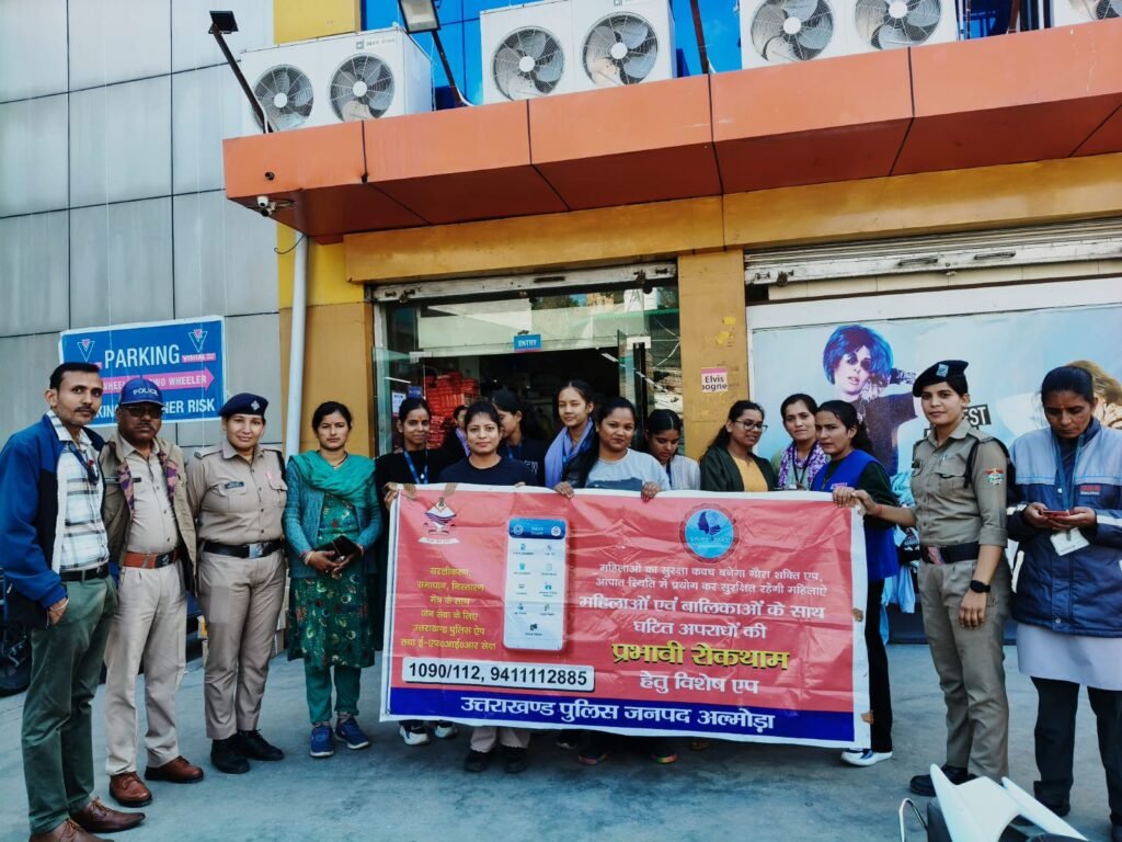 दिनांक 13.10.2025/14.10.2025 को अपर पुलिस अधीक्षक श्री हरबन्स सिंह व सीओ अल्मोड़ा गोपाल दत्त जोशी के पर्यवेक्षण में प्रभारी निरीक्षक श्रीमती जानकी भण्डारी, महिला कोतवाली अल्मोड़ा के नेतृत्व में महिला पुलिस टीम द्वारा वियर शिवा स्कूल व एडम्स स्कूल में अध्यनरत छात्राओं व विशाल मेगा मार्ट में कार्यरत स्टॉफ व महिलाओं को महिला सुरक्षा सहित विभिन्न विषयों के संबंध में जानकारी दी गई। बालिकाओं को उत्तराखंड पुलिस एप के गौरा शक्ति में महिलाओं को मिलने वाली तात्कालिक सहायता सुविधाओं के बारे में विस्तृत जानकारी देते हुए, गौरा शक्ति में महिलाओं का रजिस्ट्रेशन कराया गया।