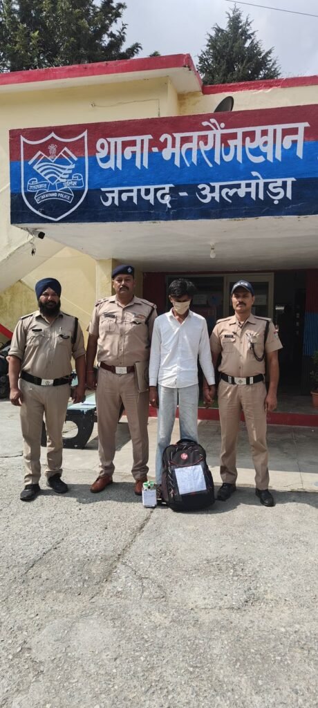 अपर पुलिस अधीक्षक श्री हरबन्स सिंह व सीओ रानीखेत श्री विमल प्रसाद के पर्यवेक्षण में थानाध्यक्ष भतरौजखान श्री अवनीश कुमार के नेतृत्व में भतरौजखान पुलिस टीम द्वारा दिनांक- 28.09.2025 को चेकिंग के दौरान मोहान बैरियर से सल्ट की तरफ पनीयाली नाला रोड पर मो0सा0 संख्या- यू0पी0 22- बी- 6682 को चैक किया गया तो बाइक सवार युवक सचिन नेगी के कब्जे से 4.085 कि0ग्रा0 अवैध गांजा बरामद किया गया। अभियुक्त को गिरफ्तार करते हुए थाना भतरौजखान में अभियुक्त के विरुद्ध मु0अ0स0-26/2025 धारा 8/20/60 एनडीपीएस एक्ट में अभियोग पंजीकृत कर आवश्यक वैधानिक कार्यवाही की गयी। मोटर साइकिल को सीज किया गया।