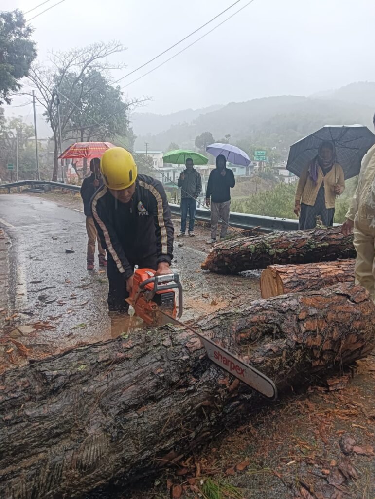 आज दिनांक 08.04.2026 को समय 12:51 पर फायर स्टेशन अल्मोड़ा को सूचना मिली कि कफ़ड़खान मुख्य मार्ग पर एक विशालकाय पेड़ टूटकर गिरा हुआ था। जिससे यातायात पूर्ण रूप से बाधित था।
