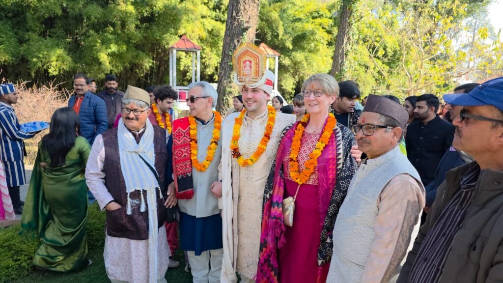 वी ओ – विवाह समारोह में कुमाऊँनी संस्कृति की अनूठी झलक देखने को मिली। ढोल-दमाऊं की गूंज, पारंपरिक परिधान, लोक संगीत और पहाड़ी व्यंजनों ने आयोजन को यादगार बना दिया। विदेशी मेहमानों के लिए यह समारोह उत्तराखंड की समृद्ध सांस्कृतिक विरासत को करीब से जानने का एक विशेष अवसर रहा।