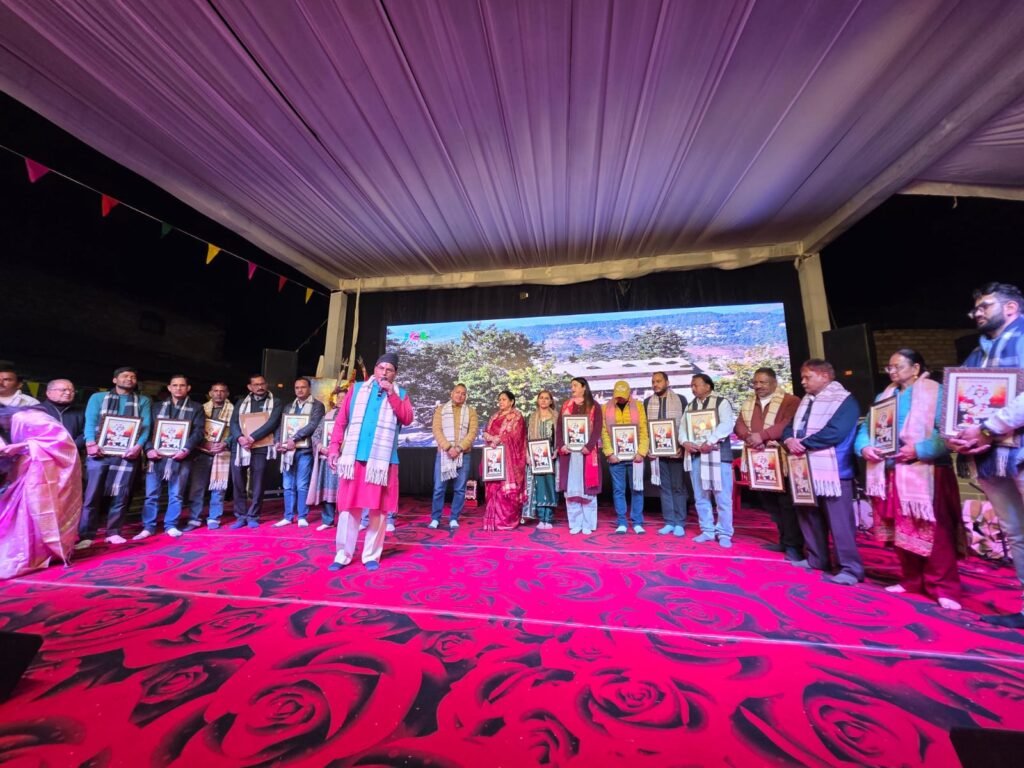 जय गोल्ज्यू महोत्सव 2025 में दिनांक 01 nov को दिन में मुख्य अतिथि श्रीमती स्वेता उपाध्याय जी उपस्थित रहें। इस कार्यक्रम में विद्यालय सामूहिक लोकनृत्य प्रतियोगिता आयोजित हुई जिसमें प्रथम स्थान कृतार्थ भावना अकादमी अल्मोड़ा, द्वितीय स्थान साईं कान्वेंट स्कूल , तृतीय मानस पब्लिक स्कूल को प्राप्त हुआ । तथा महिला गायन प्रतियोगिता सौम्या ने प्रथम स्थान प्राप्त किया , व द्वितीय स्थान प्राप्त किया अनिता जी, तृतीय स्थान नीलम आर्या ने प्राप्त किया । सायं कालीन कार्यक्रम में आर्यन ग्रुप ने अपनी प्रस्तुति दी। तत्पश्चात अतिथियों द्वारा दीप प्रज्वलन किया गया । आज के मुख्य श्री रघुनाथ सिंह चौहान जी , अति विशिष्ट अतिथि श्री गौरव पांडे जी, श्रीमती किरन पंत जी, श्रीमती लता बोरा जी, श्रीमती बीना नयाल जी , श्री धर्मेंद्र बिष्ट जी, श्री भरत भूषण कुंडू जी, श्री राजे अली अंसारी जी, श्री जय सेहगल जी , श्री त्रिलोचन जोशी जी , श्री मनोज तिवारी जी bjp, श्री राजेंद्र बिष्ट जी, श्री संजय जोशी जी, श्रीमती रेखा आर्या जी, श्री अश्विनी नेगी जी, श्री गोपाल तिवारी जी, श्री राजीव गुरुरानी जी , श्रीमती लता तिवारी जी, श्री दिनेश मठपाल जी, श्री संतोष बिष्ट जी उपस्थित रहे। साथ ही आज के स्टार नाइट में राकेश खनवाल जी ने क्रीम पाउडर घसनी किले ने, हिमूली के व अपने अन्य हिट गीतों में लोगों को नाचने के लिए मजबूर किया, लोक गायिका ज्योति कोहली जी द्वारा भी बहुत सुंदर प्रस्तुति दी गई.