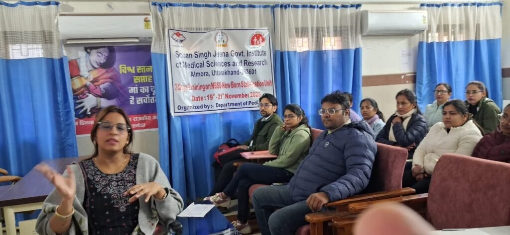 अल्मोड़ा जनपद के दूरस्थ स्वास्थ्य इकाइयों में नवजात शिशुओं के बेहतर उपचार और प्रबंधन को सुनिश्चित करने के लिए, शोबन सिंह जीना राजकीय आयुर्विज्ञान एवं शोध संस्थान, अल्मोड़ा में एक तीन दिवसीय क्षमता विकास कार्यशाला का सफल आयोजन किया गया। राष्ट्रीय स्वास्थ्य मिशन (NHM) और मुख्य चिकित्सा अधिकारी (CMO), अल्मोड़ा के वित्तीय सहयोग से आयोजित इस महत्वपूर्ण प्रशिक्षण में जनपद भर के 30 चिकित्सा अधिकारियों और नर्सिंग अधिकारियों ने भाग लिया।
