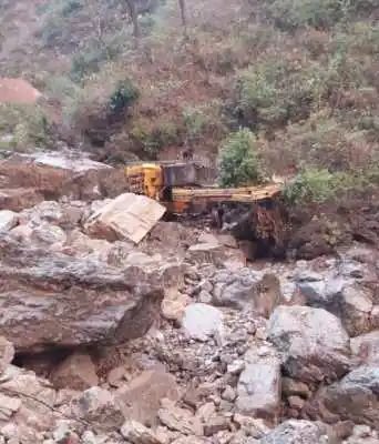 Bageshwar Accident निर्माण कार्य के दौरान मशीन खाई में गिरी,दो की मौत