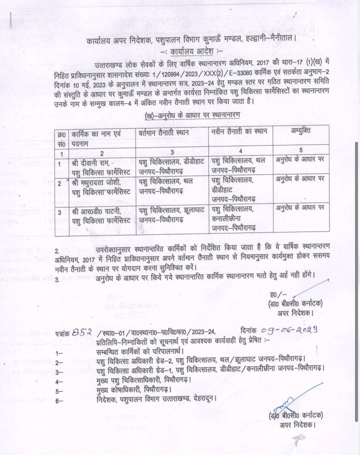 Big Breking उत्तराखंड में लगातार तबादले अब पुशपालन विभाग में हुये बंपर तबादले देखिये सूची