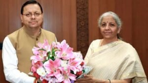 Uttrakhand News:मुख्यमंत्री पुष्कर सिंह धामी ने उत्तराखंड के विकास को मांगे 17 हजार करोड़,वित्त मंत्री सीतारमण से मिले CM धामी