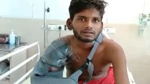 कंक्रीट मशीन में काम करते हुए एक व्यक्ति का हाथ कंधे से कटकर अलग हो गया। कटे हाथ को गीले,...