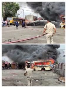 रोडवेज बस स्टैंड के निकट बीटीसी परिसर में रिपेयर हो रही दो बसों की बॉडी में वेल्डिंग के दौरान आग...