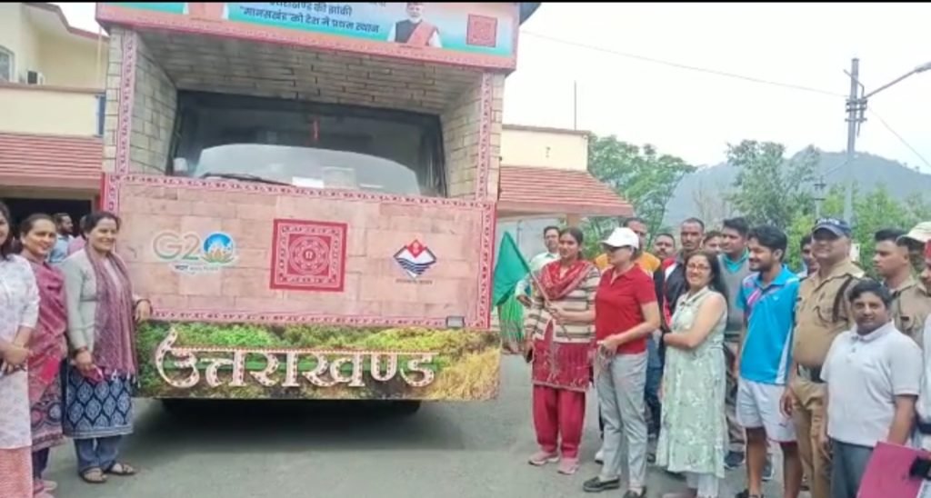राष्ट्रीय राजधानी नई दिल्ली में आयोजित गणतंत्र दिवस परेड-2023 में प्रथम स्थान पर रही उत्तराखण्ड की झांकी ’’मानसखण्ड’’ को जिलाधिकारी अनुराधा पाल ने बुधवार को जिला कार्यालय परिसर से हरी झण्डी दिखाकर आम जनता दर्शन के लिए रवाना किया।