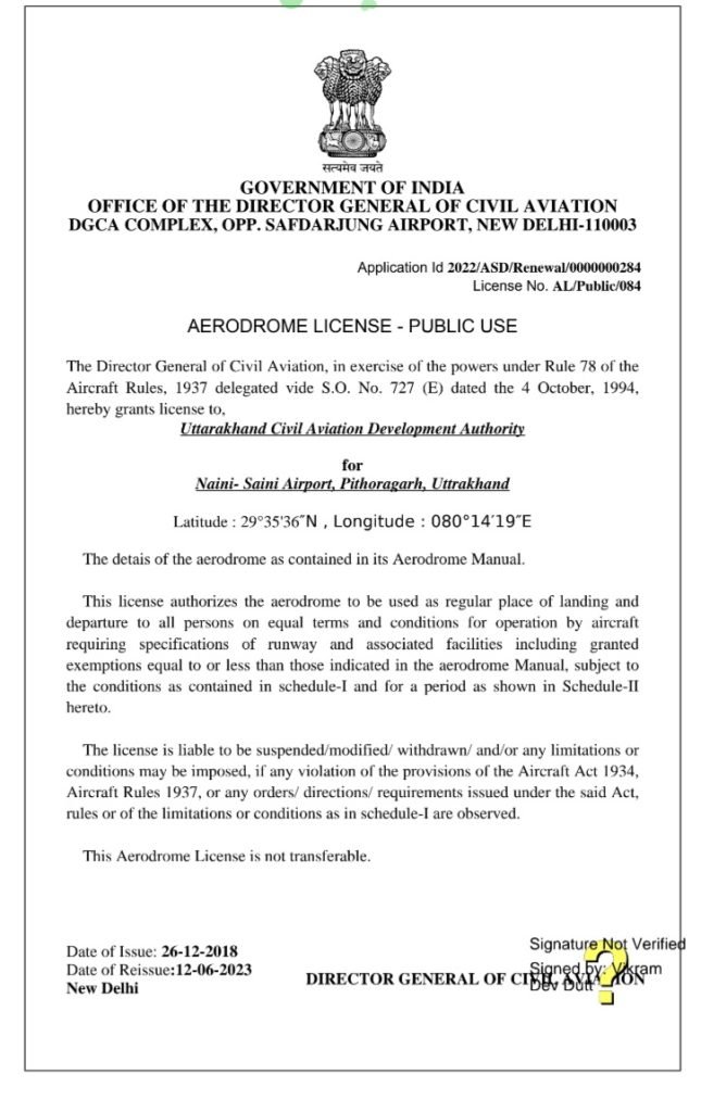 Big Breking पिथौरागढ़ नैनी सैनी एयरपोर्ट,का लाइसेंस जारी अब उड़ेगी उड़ान