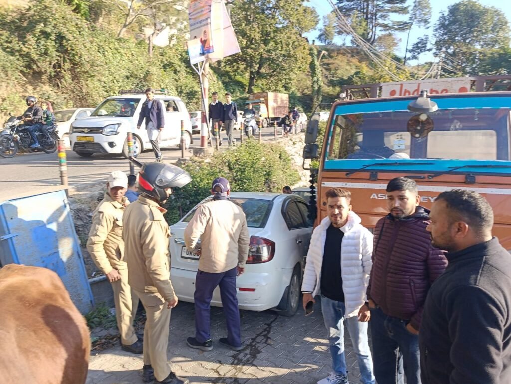 अल्मोड़ा-अल्मोड़ा नगर क्षेत्र में सड़क किनारे खड़े चौपाहियां वाहन लगातार यातायात में अवरोध बना रहे हैं।आज गैस गोदाम लिंक मोटर मार्ग में गैस के सिलेंडर से भरा हुआ ट्रक सड़क पर फंस गया जिसका कारण सड़क किनारे खड़े चौपहियां वाहन थे।मौके पर पहुंचे पार्षद अमित शाह एवं अभिषेक जोशी के द्वारा यातायात पुलिस से संपर्क किया गया इसके बाद यातायात पुलिस मौके पर पहुंची और वाहन चालक से संपर्क कर वाहन हटवाया गया तब जाकर यातायात सुचारू हो सका। लगातार पुलिस प्रशासन के द्वारा लोगों से अपने चौपहियां वाहन सड़क किनारे खड़े न करने की अपील की जा रही है लेकिन बावजूद इसके सड़क किनारे चौपाहियां वाहन लगाने से लोग बाज नहीं आ रहे हैं जिस कारण लगातार नगर क्षेत्र में जाम जैसी समस्या बनी हुई है। पार्षद अमित शाह ने कहा कि उनके द्वारा लगातार गैस गोदाम के अधिकारियों से भी निवेदन किया गया है कि इस मार्ग में गैस के बड़े ट्रक ना लाएं लेकिन बावजूद इसके बेधड़क गैस के बड़े ट्रक भी सड़क में चल रहे हैं।इसके साथ ही सड़क के किनारे चौपाहियां वाहनों की कतार लोगों के द्वारा लगाई गई है जो लगातार जाम का सबक बन रही है।पार्षद अभिषेक जोशी ने कहा कि सड़क किनारे खड़े इन चौपाहियां वाहनों के कारण आए दिन जाम की स्थिति बनती है एवं दुर्घटना का खतरा भी बना रहता है। पार्षदो ने प्रशासन से अपील की हैं कि यहां पर नो पार्किंग के बोर्ड लगाए जाएं तथा सड़क किनारे वाहन खड़े करने वालों पर कठोर कार्रवाई की जाए।