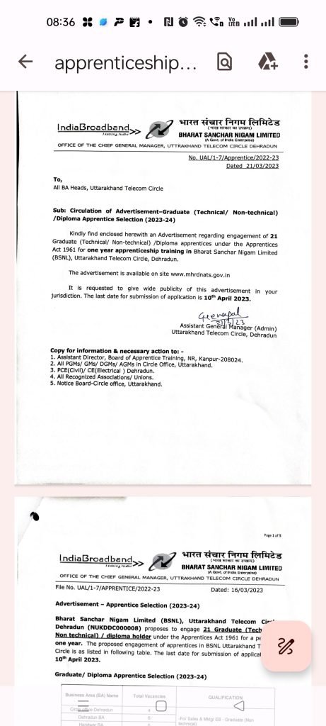 उत्तराखंड बीएसएनल परिमंडल में निकली भर्ती आप भी करें आवेदन
